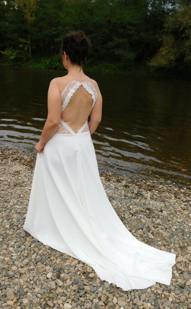 Dos nu agrémenté d ‘un galon en broderie fine.